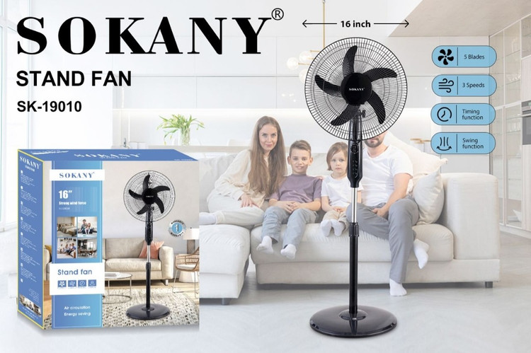 پنکه ایستاده سوکانی مدل 19010 یکی از محصولات با کیفیت شرکت Sokani است که به دلیل طراحی مدرن و عملکرد کارآمد، برای استفاده در خانه یا محیطهای کاری بسیار مناسب است. در ادامه مشخصات کلی این مدل را برای شما ارائه میکنم: